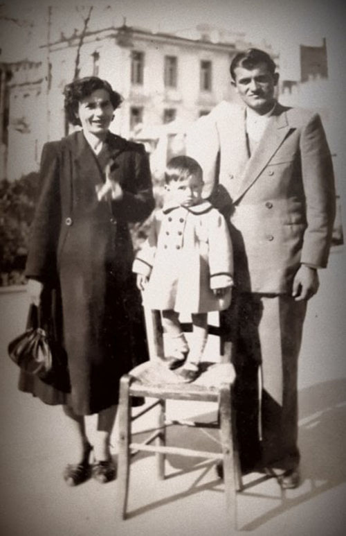 Στην φωτογραφία, με τον συζυγό της Πανάγο και τον γιο τους Νίκο το 1952 στην Πλατεία Κουμουνδούρου.