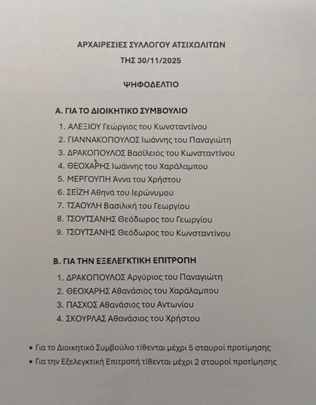 Στις αρχαιρεσίες για την ανάδειξη της νέας Διοίκησης του Συλλόγου δικαίωμα του εκλέγειν και εκλέγεσθαι (βλ. ψηφοδέλτιο) έχουν όλοι και όλες που έχουν συμπληρώσει το 18ο έτος της ηλικίας τους και είναι ταμειακώς εντάξει. Στους ανωτέρω συγκαταλέγονται: