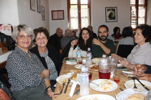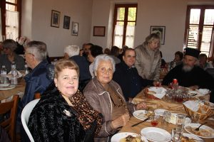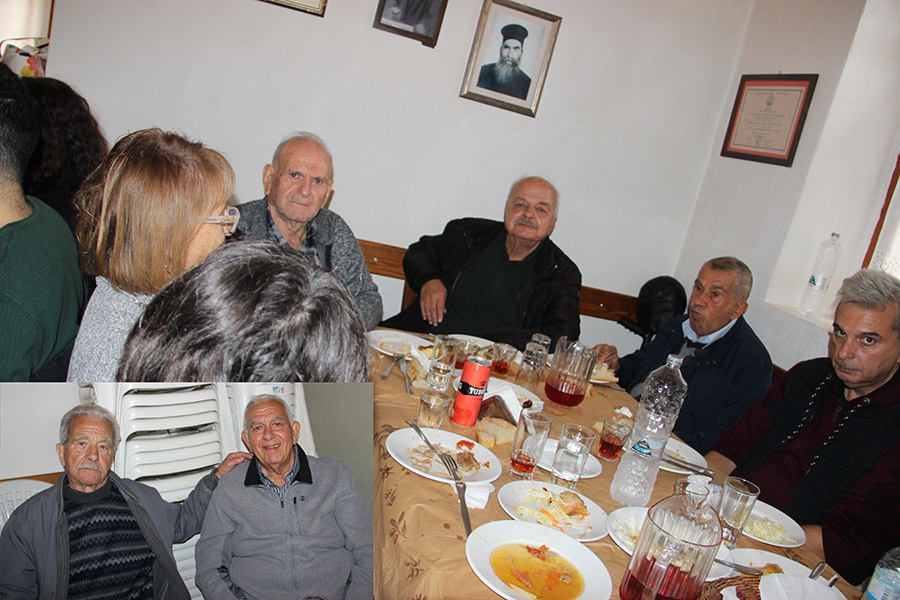 Μετά την Αρτοκλασία, ανηφορίσαμε για το χωριό, για το καθιερωμένο τραπέζωμα και το ετήσιο αντάμωμα. Η βροχή μάς ανάγκασε να στριμωχτούμε στο Εντευκτήριο, όπου, με την ευλογία του παπα-Νεκτάριου, απολαύσαμε με καλό κρασί το γεύμα που μας ετοίμασε ο Σωτήρης από τη Μεγαλόπολη. Οι φωτογραφίες από τον …επίσημο φωτογράφο του χωριού Φώτη Τσαρμπόπουλο.